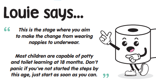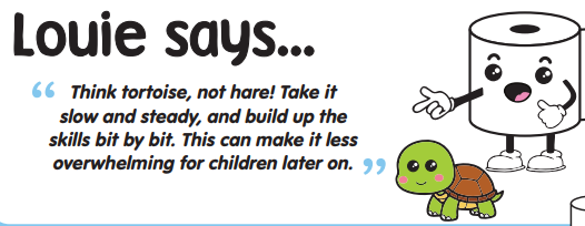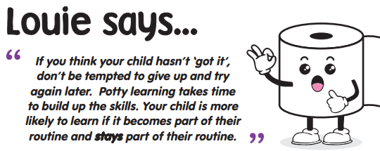 Louie knows it’s not always easy! Potty training is a process and takes time. It is unusual for young children to suddenly ‘get it’. Don’t be disheartened and don’t give up if it feels like progress isn’t happening… keep the potty-sits going and help your child to build up the skills bit by bit.