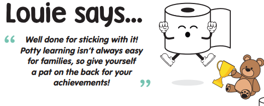 - Celebrate the little wins: We know that potty and toilet training can be a long journey, but your patience and support make all the difference. Celebrate every step… it’s important to recognise effort, not just success.