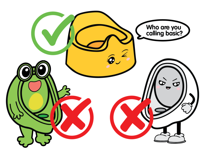 Basic potties are good enough – it doesn’t have to play music, or flush, or look like a toilet.