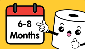 As soon as your baby can safely sit up without needing to be supported, start sitting them on a potty. This is usually when they are around 6-8 months. We know this might feel really early. Your child is very unlikely to ‘get potty trained’ at this stage, it’s more about helping them become used to how it feels to sit on a potty and getting into the habit of potty sits.